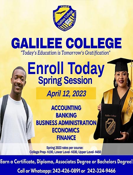 Galilee College is located on the eastern tip of the lovely picturesque settlement of New Providence, which is a short eight miles of Nassau, the capital of The Bahamas. Nassau is the tourist Mecca of the Atlantic. Its rich spiritual scope and hospitable inhabitants give rise to a conducive environment for personal growth. The campus is situated on Joe Farrington Road, in the Galilee Corporate Centre.